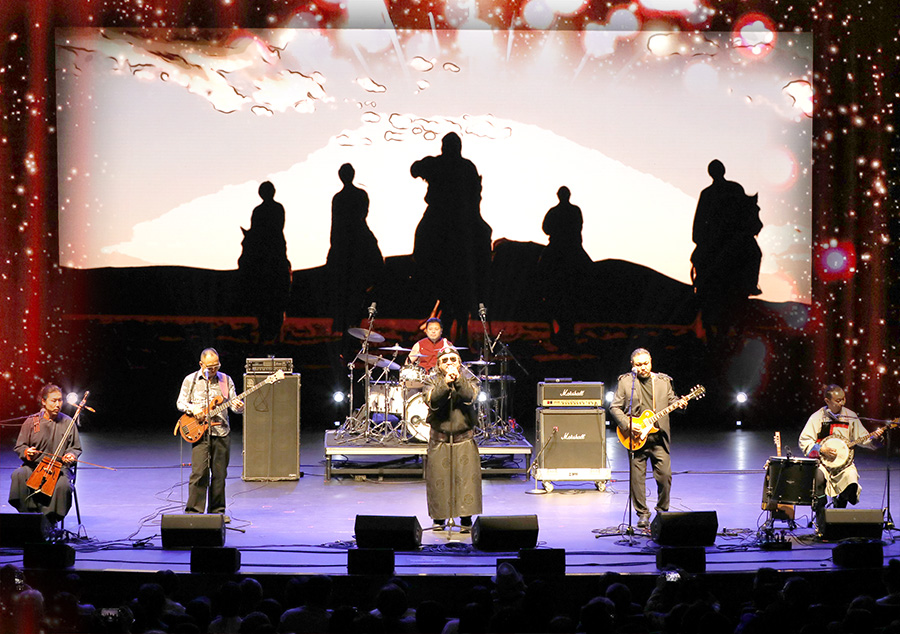 晚會(huì)在一曲激昂的《初升的太陽(yáng)》中拉開(kāi)帷幕,杭蓋樂(lè)隊(duì)以其天籟之音瞬間將觀眾帶入廣袤的草原,讓人仿佛感受到了來(lái)自中國(guó)內(nèi)蒙古的淳樸與熱情。隨后,杭蓋樂(lè)隊(duì)又帶來(lái)了《希格希日》和《鴻雁》兩首經(jīng)典曲目,將蒙古民間音樂(lè)與當(dāng)代搖滾巧妙融合,展現(xiàn)出國(guó)際化的民族搖滾風(fēng)格,為晚會(huì)增添了濃厚的文化色彩。最后更是以一首《酒歌》引來(lái)全場(chǎng)轟動(dòng)與共舞,開(kāi)場(chǎng)即將晚會(huì)推向高潮。