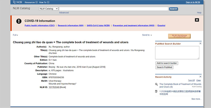 《創(chuàng)瘍治療大全》被美國(guó)國(guó)家醫(yī)學(xué)圖書(shū)館收錄