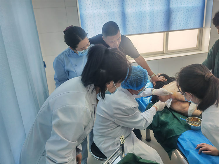 4月11日,應(yīng)雞澤縣中醫(yī)院之邀,《中國(guó)燒傷創(chuàng)瘍雜志》常務(wù)編委、燒傷創(chuàng)瘍?cè)偕t(yī)療技術(shù)臨床專(zhuān)家趙瑞慶,在該院使用再生醫(yī)療技術(shù)會(huì)診了二例慢創(chuàng)患者(1例左下肢靜脈曲張潰瘍20年,1例截癱合并雙側(cè)壓瘡8年)。事后與當(dāng)?shù)蒯t(yī)務(wù)人員共同討論了下一步治療方案并在科里進(jìn)行了技術(shù)培訓(xùn),特別強(qiáng)調(diào)了靜脈曲張、壓瘡再生技術(shù)修復(fù)創(chuàng)面的注意事項(xiàng),受到了當(dāng)?shù)蒯t(yī)務(wù)人員的熱情稱贊。
