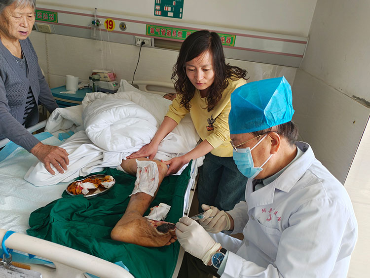 4月10日,《中國(guó)燒傷創(chuàng)瘍雜志》常務(wù)編委、燒傷創(chuàng)瘍?cè)偕t(yī)療技術(shù)臨床專(zhuān)家趙瑞慶,應(yīng)邱縣中醫(yī)院急會(huì)診邀請(qǐng),采用再生醫(yī)療技術(shù)會(huì)診了糖尿病合并癥患者。該患者四個(gè)月前曾在北京某醫(yī)院就診,未見(jiàn)好轉(zhuǎn),故轉(zhuǎn)回當(dāng)?shù)蒯t(yī)院治療。事后趙教授和當(dāng)?shù)蒯t(yī)護(hù)人員,認(rèn)真討論了發(fā)病的過(guò)程,并且制定了具體的治療計(jì)劃,強(qiáng)調(diào)注意觀察各階段的病情變化,嚴(yán)格落實(shí)各階段的治療措施。