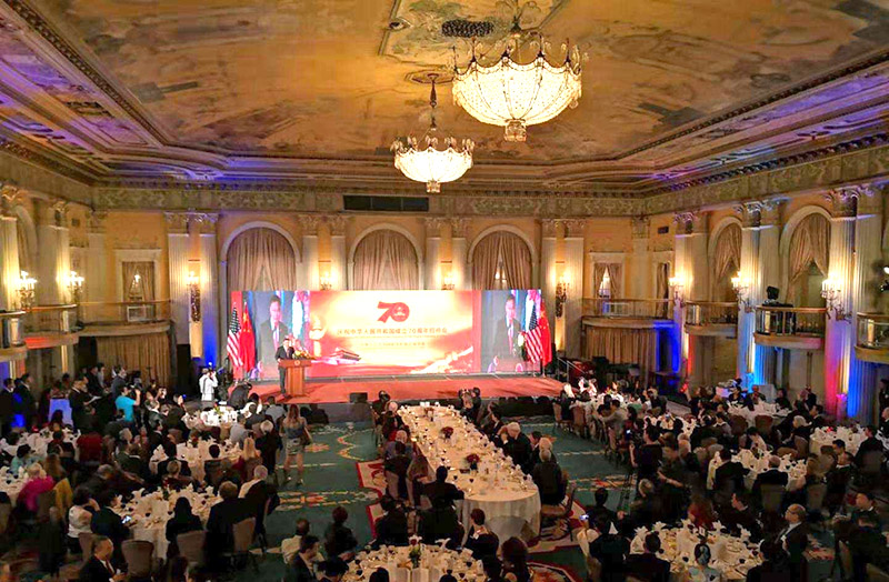 9月25日晚間,中國駐洛杉磯總領(lǐng)館在洛杉磯有百年歷史的千禧酒店舉行中華人民共和國成立70周年第二場招待會(huì)。美寶集團(tuán)董事局徐鵬、李俐應(yīng)邀出席招待會(huì)并與張平總領(lǐng)事、多位到訪過北京美寶總部的加州市長、加州議員及國會(huì)議員、中領(lǐng)館其他同志們以及其他中外友人共200余人共同慶祝新中國成立70周年,祝福偉大祖國國運(yùn)昌盛,繁榮富強(qiáng)!招待會(huì)現(xiàn)場還舉辦了慶祝中華人民共和國成立70周年圖片展,全方位展示了新中國成立70年來取得的偉大成就。