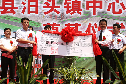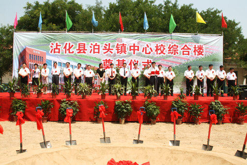7月6日上午10時,山東省濱州市沾化縣泊頭鎮(zhèn)小學(xué)內(nèi)到處洋溢著熱烈的氣氛,由美寶國際集團董事局主席徐榮祥教授捐資一百萬,當(dāng)?shù)卣?guī)劃建設(shè)的中心小學(xué)奠基儀式在此隆重舉行。