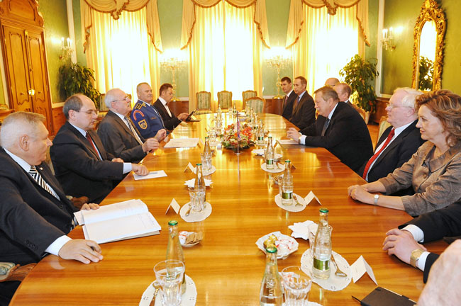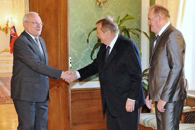 斯洛伐克共和國(guó)總統(tǒng)I. Gasparovic(左三)與IEF俱樂部成員進(jìn)行會(huì)談。