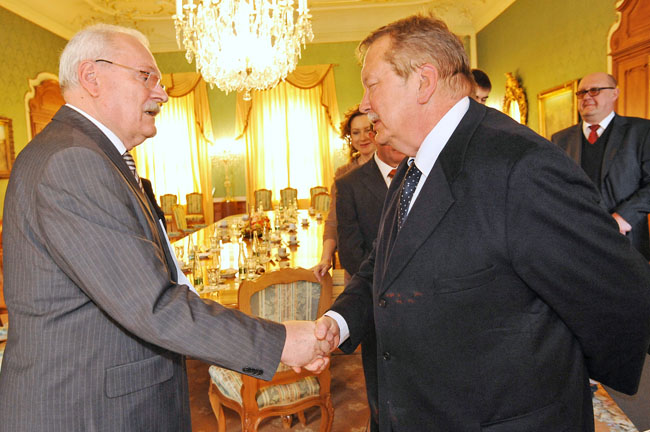 當(dāng)?shù)貢r(shí)間2014年3月10日上午11點(diǎn),斯洛伐克共和國(guó)總統(tǒng)I. Gasparovic歡迎IEF經(jīng)濟(jì)俱樂部代表團(tuán)??偨y(tǒng)向IEF代表P. Kasalovsky先生表示親切問候。