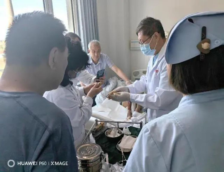 2023年6月27日,《中國燒傷創(chuàng)瘍雜志》編委、燒傷創(chuàng)瘍再生醫(yī)療技術(shù)臨床專家張強,應(yīng)銅陵市人民醫(yī)院邀請,前往醫(yī)院會診多例壓創(chuàng)患者,對患者創(chuàng)面進行檢查,指導(dǎo)示范換藥,并詳細(xì)講解進一步治療方案,受到醫(yī)院領(lǐng)導(dǎo)和患者家屬的高度認(rèn)可。