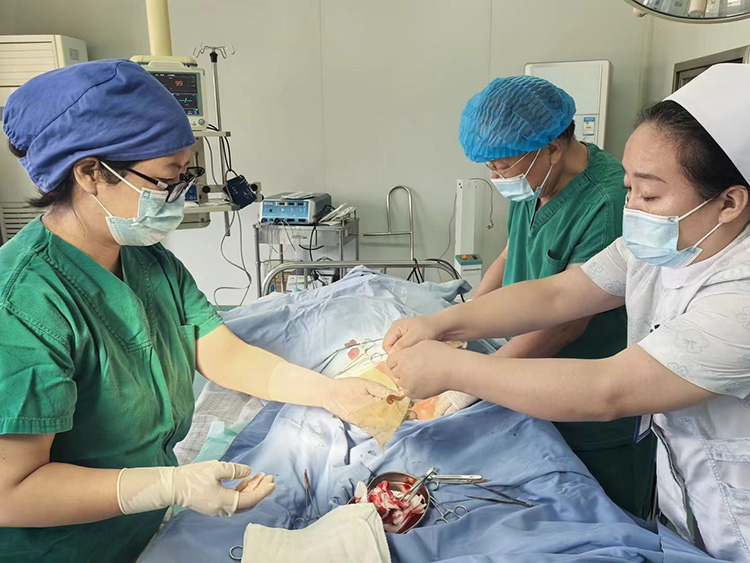 9月11日,應(yīng)解放軍聯(lián)勤保障部隊982醫(yī)院邀請,《中國燒傷創(chuàng)瘍雜志》常務(wù)編委、燒傷創(chuàng)瘍再生醫(yī)療技術(shù)臨床專家趙瑞慶,在該院會診了一例大面積燒傷患者、糖足潰瘍、壓瘡等七例慢創(chuàng)患者。針對一例會陰部深筋膜感染、一例糖尿病足五級深部感染嚴(yán)重患者進行了手術(shù)治療。事后在示教室又進行了《再生醫(yī)療技術(shù)治療糖尿病足》專項技術(shù)培訓(xùn),受到該院醫(yī)護人員的認(rèn)可與好評。