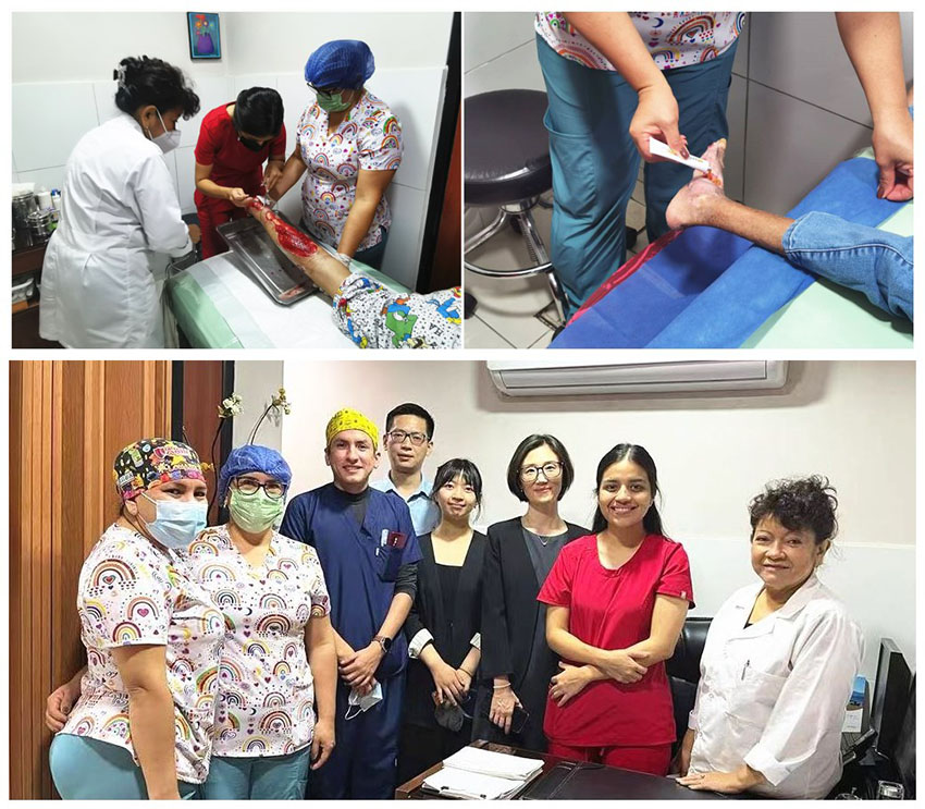 次日,美寶國際一行來到Dr. Isabel Atocha的診所進行交流與學(xué)習(xí),并觀摩了其醫(yī)護人員極為專業(yè)的操作。Dr. Isabel在糖尿病足治療領(lǐng)域擁有多年應(yīng)用再生醫(yī)療技術(shù)的經(jīng)驗。此行中,她詳細介紹了四位患者應(yīng)用再生醫(yī)療技術(shù)進行治療的情況,其中三位患者均在他院被告知需要截肢,轉(zhuǎn)而求助Dr. Isabel后開始應(yīng)用再生醫(yī)療技術(shù)。目前,患者的創(chuàng)面愈合狀況良好,避免了截肢手術(shù)的痛苦。