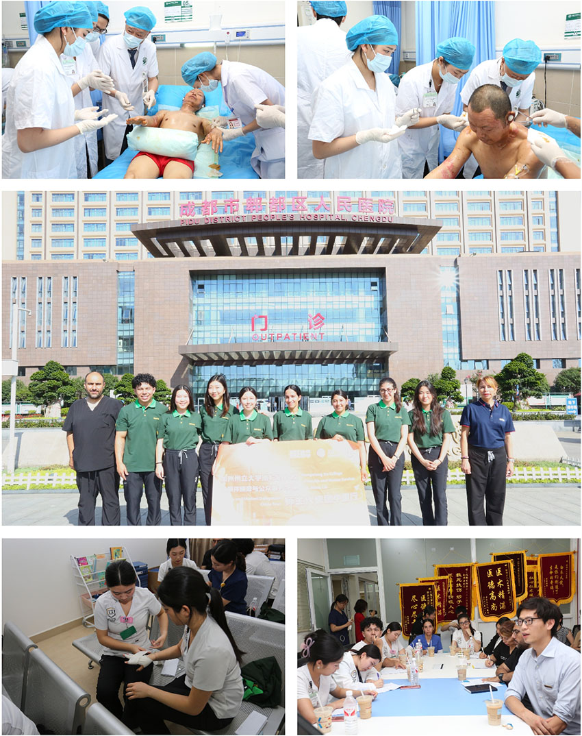 訪學之旅的首站定于成都,這座承載著古蜀文明輝煌歷史的城市。7月5日,師生們走進成都市郫都區(qū)人民醫(yī)院,受到郫都人民醫(yī)院副院長、中國中西醫(yī)結合學會燒傷專業(yè)委員會顧問付子俊、郫都人民醫(yī)院燒傷創(chuàng)瘍科主任王鄉(xiāng)寧及多位專家的熱情歡迎。在這里,他們不僅親眼見證了再生醫(yī)療技術的臨床應用奇跡,還通過觀摩美寶濕潤燒傷膏的換藥過程及護理晨間治療,深刻感受到了醫(yī)療創(chuàng)新的力量。此外,系列專題講座更是激發(fā)了學生們對再生醫(yī)療技術濃厚的興趣與探索欲。