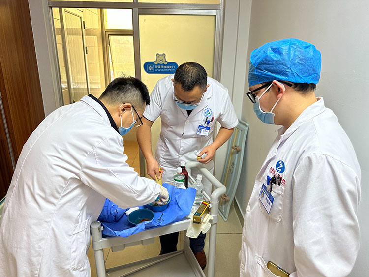 2月28日,應(yīng)陽江市陽東區(qū)人民醫(yī)院骨二科李主任和梁主任邀請,北京榮祥再生醫(yī)學(xué)研究所副所長、中國中西醫(yī)結(jié)合學(xué)會燒傷專業(yè)委員會常務(wù)委員、《中國燒傷創(chuàng)瘍雜志》副總編輯、應(yīng)用燒傷創(chuàng)瘍再生醫(yī)療技術(shù)治療糖尿病足領(lǐng)域?qū)<彝鹾樯魅螒?yīng)邀到該科室指導(dǎo)創(chuàng)面修復(fù)??平ㄔO(shè)及會診糖尿足潰瘍和壓瘡等慢性創(chuàng)面病人,并到手術(shù)室親自為三例慢性創(chuàng)面病人清創(chuàng)、換藥,指導(dǎo)創(chuàng)瘍再生醫(yī)療技術(shù)規(guī)范化應(yīng)用,得到醫(yī)護(hù)人員和患者的高度好評。