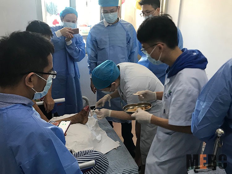 9月22日,醫(yī)療部楊軍主任應(yīng)廣東揭陽市惠來縣人民醫(yī)院的邀請,參加會診了一位右下肢內(nèi)側(cè)皮瓣術(shù)后壞死患者,后續(xù)采用再生醫(yī)療技術(shù)治療,取得了顯著的治療效果!
