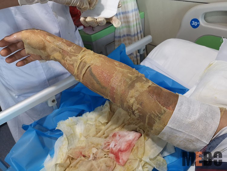 9月24日,應(yīng)湘陰縣人民醫(yī)院創(chuàng)口科室邀請,北京榮祥再生醫(yī)學(xué)研究所副所長、《中國燒傷創(chuàng)瘍雜志》編委金黨軍來到醫(yī)院會診燒傷患者,規(guī)范再生醫(yī)療技術(shù)換藥方法??剖依枳o(hù)士長陪同會診換藥。相比傳統(tǒng)療法,再生醫(yī)療技術(shù)在濕潤環(huán)境下進(jìn)行原位修復(fù)再生,痛苦小,愈后少疤痕甚至無疤痕,大大提高了燒傷患者的生活質(zhì)量。