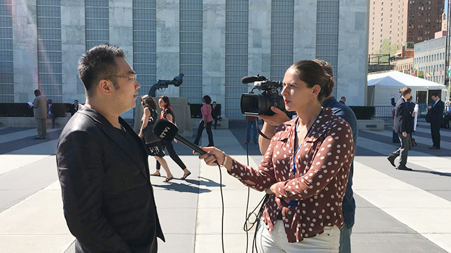 俄羅斯國際電視臺(tái)就聯(lián)大會(huì)議采訪徐鵬