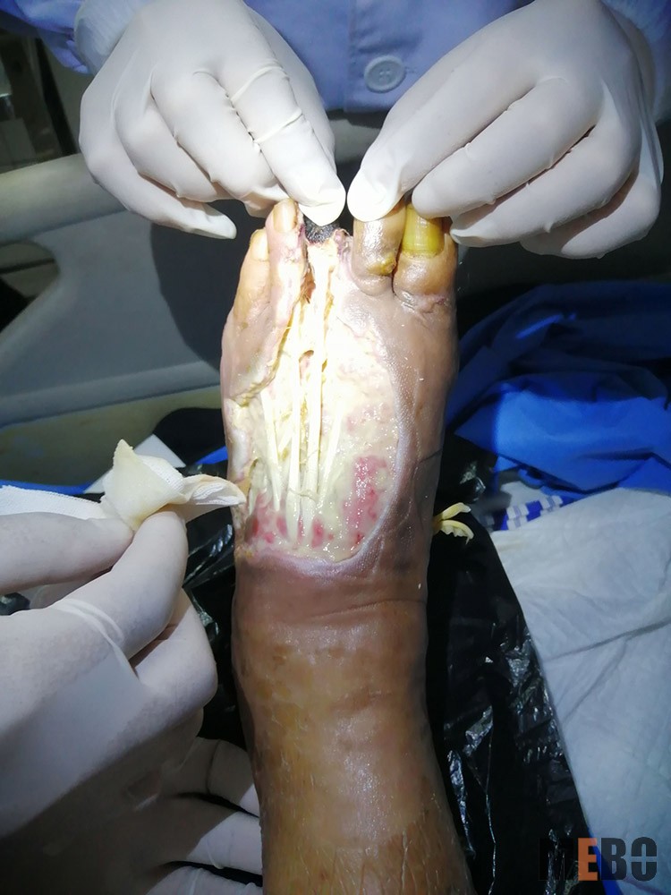2021年5月12日, 應南昌大學附屬三三四醫(yī)院外科錢主任和萬醫(yī)生邀請,北京榮祥再生醫(yī)學研究所副所長、《中國燒傷創(chuàng)瘍雜志》編委金黨軍前往該科室對一名糖尿病足患者進行會診,并親自給患者進行清創(chuàng)換藥,示范再生醫(yī)療技術治療糖尿病足患者的規(guī)范操作,并給出了很多專業(yè)的后期處理建議,錢主任萬醫(yī)生對金教授的到來表示了高度感謝,也對再生醫(yī)療技術治療慢創(chuàng)有了更深的認識。