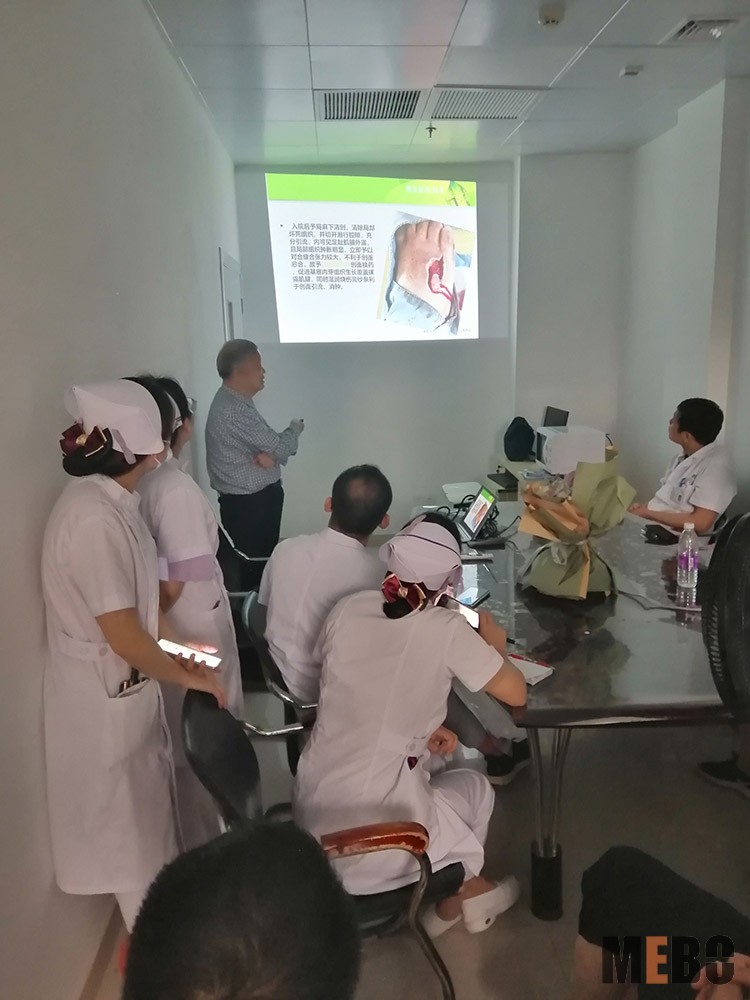 2021年5月12日,應骨科陳國富主任邀請,再生醫(yī)療技術走進蕪湖繁昌縣人民醫(yī)院骨科,張強主任為廣大醫(yī)患人員主講了一期科室培訓及鋼板外露病例會診。參會人員對張主任表示感謝,規(guī)范的換藥技術和換藥技巧讓大家受益匪淺。大家表示以后遇到創(chuàng)面換藥 特別是難愈合創(chuàng)面患者,就更有底氣和信心運用再生醫(yī)療技術將創(chuàng)面治愈成功,未來將帶著這項技術造福更多人群。