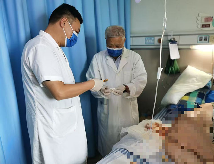 7月31日,應(yīng)湘潭市第六人民醫(yī)院創(chuàng)面修復(fù)科李湘輝主任的邀請,《中國燒傷創(chuàng)瘍雜志》編委、燒傷創(chuàng)瘍再生醫(yī)療技術(shù)臨床專家金黨軍,到科室會診一例多發(fā)性壓瘡患者,金黨軍主任親自示范再生醫(yī)療技術(shù)換藥流程,強調(diào)了換藥過程中的禁忌和注意事項,并交流了綜合治療方案,得到了科室主任的高度認可,再生醫(yī)療技術(shù)在湖南省湘中地區(qū)醫(yī)療單位逐漸擴大普及和應(yīng)用,為廣大慢性創(chuàng)面患者帶來了福音。