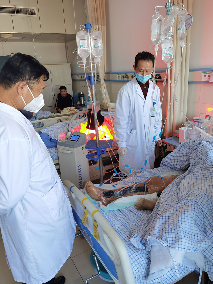 11月初,高平市燒傷專(zhuān)科醫(yī)院收治了一例沸水燙傷患者(雙臀、股內(nèi)側(cè)混合度20%)。因山西省疫情封控,再生醫(yī)學(xué)知名專(zhuān)家、《中國(guó)燒傷創(chuàng)瘍雜志》常務(wù)編委趙瑞慶主任利用視頻方式,依據(jù)病情發(fā)展的三個(gè)階段進(jìn)行了技術(shù)指導(dǎo),同時(shí)在當(dāng)?shù)蒯t(yī)護(hù)人員的辛勤工作努力下,患者目前大部分創(chuàng)面愈合?;颊弑硎?,造福廣大百姓的再生醫(yī)療技術(shù)發(fā)明人徐榮祥教授給了他新生康復(fù)的希望,患者對(duì)此表示十分感謝!