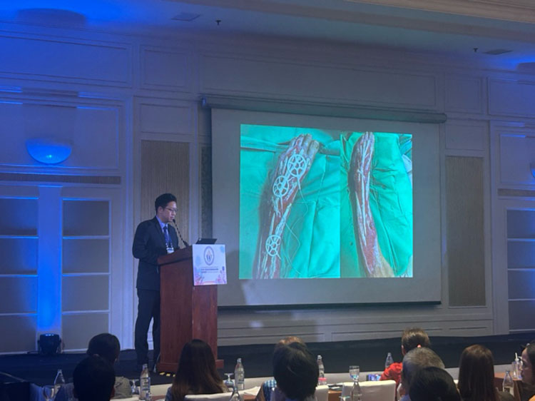 本次大會(huì)特邀權(quán)威專家團(tuán)分別針對(duì)深度燒燙傷、創(chuàng)面管理以及慢性難愈性創(chuàng)面治療三個(gè)核心主題進(jìn)行了從理論到實(shí)踐的系統(tǒng)分享。在燒燙傷創(chuàng)面治療與管理領(lǐng)域泰國(guó)燒傷專家Dr Pomprom重點(diǎn)介紹了燒傷濕潤(rùn)療法,特別強(qiáng)調(diào)了該項(xiàng)技術(shù)在創(chuàng)面以及創(chuàng)口恢復(fù)期的感染控制、創(chuàng)面修復(fù)速度以及疤痕預(yù)防方面的臨床實(shí)踐應(yīng)用優(yōu)勢(shì)。