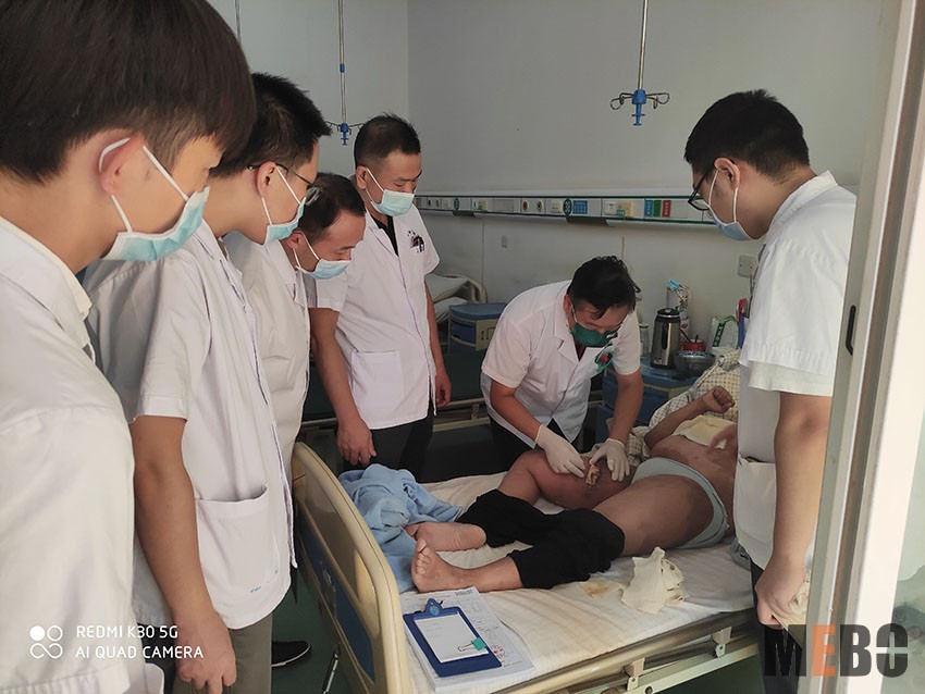 2021年9月15日,中國中西醫(yī)結(jié)合學(xué)會燒傷專業(yè)委員會醫(yī)療部專家張強主任受邀到武漢市第五醫(yī)院血管外科會診了一例下肢潰瘍患者,張主任親自示范和指導(dǎo)規(guī)范用藥,再三叮囑。會診后與血管外科楊主任深入交流了再生醫(yī)療技術(shù)在下肢淤血性靜脈潰瘍、缺血性動脈硬化閉塞潰瘍等的應(yīng)用,力爭最大程度減少截肢,降低治殘率!