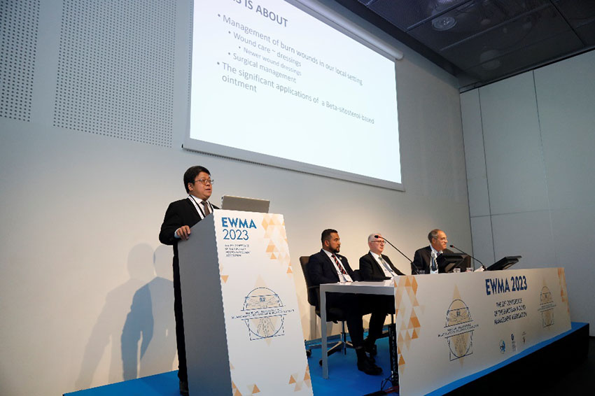 除演講外,在海報(bào)展示中,來(lái)自蒙古Venera VIP Clinic醫(yī)院的Solongo Oyunbileg,馬來(lái)西亞Raja Perempuan Zainab II醫(yī)院的Mohd Zurairie,以及馬來(lái)西亞皇后伊麗莎白醫(yī)院的Jiann Wen Yap,分別提交了題為“利用濕潤(rùn)燒傷膏治療傷口:1例病例報(bào)告”、“聯(lián)合應(yīng)用濕潤(rùn)燒傷膏與硅膠非粘性泡沫敷料治療小兒下肢遠(yuǎn)端創(chuàng)傷” 、“使用濕潤(rùn)燒傷膏治療壓力性損傷”的電子海報(bào), 深受現(xiàn)場(chǎng)參會(huì)者的好評(píng)。