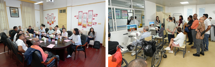 9月17日,代表團訪問了湖南省人民醫(yī)院馬王堆院區(qū)康復(fù)醫(yī)學(xué)科??祻?fù)醫(yī)學(xué)科主任蔡華安、學(xué)科建設(shè)辦干事左盼對代表團的到訪表示熱烈歡迎??祻?fù)醫(yī)學(xué)科三病區(qū)醫(yī)療組組長黃靚博士系統(tǒng)介紹了再生醫(yī)療技術(shù)在治療壓瘡等慢性難愈合創(chuàng)面中的應(yīng)用優(yōu)勢,并結(jié)合臨床案例,生動展示了該項技術(shù)的顯著療效。分享結(jié)束后,代表團走進康復(fù)醫(yī)學(xué)科病房進行實地參觀。代表團成員對科室將創(chuàng)面管理與康復(fù)治療緊密結(jié)合的治療模式深表贊賞,紛紛表示回國后將借鑒這一理念,推動創(chuàng)面管理與康復(fù)治療的融合,以提升患者的治療效果與體驗。