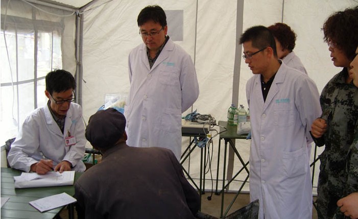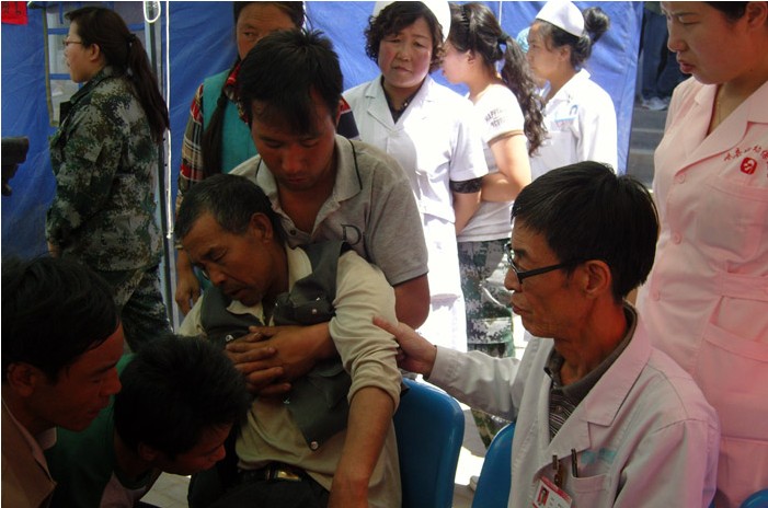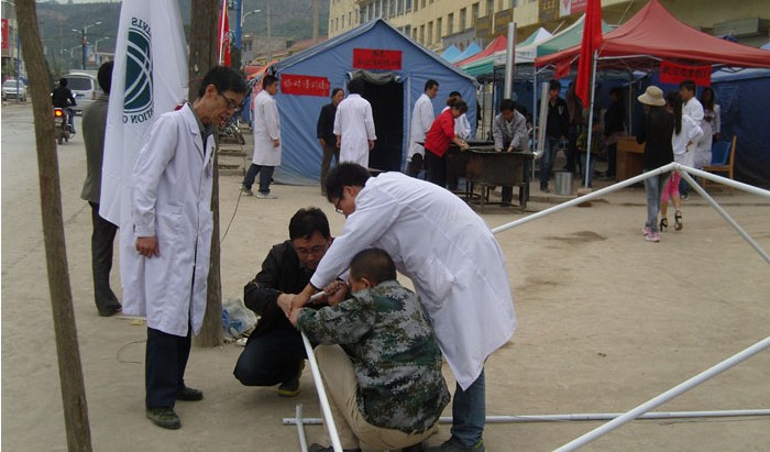 柳佰富主任率15人的抗震救災醫(yī)療隊于當日22點從蘭州緊急出發(fā),經過六個多小時連夜兼程,于23日凌晨四點多到達災區(qū)。顧不上一路的奔波與勞累,顧不上一口飯一口水,總想著以最快的速度,將最便捷的方法、最有效的技術帶給那些等待救治的傷者。