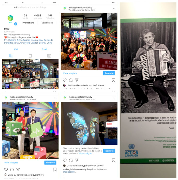 同時(shí),美寶集團(tuán)積極響應(yīng)大會(huì)的號(hào)召在新生代人群中傳播與拓展聯(lián)合國(guó)可持續(xù)發(fā)展目標(biāo)的倡議。美寶全球社群(MEBO Global Community)作為美寶國(guó)際在全球進(jìn)行無(wú)界交流的平臺(tái)將致力于通過(guò)海外社交媒體Facebook,INSTAGRAM 等及時(shí)、全面、多角度的發(fā)布集團(tuán)以及可持續(xù)發(fā)展社群中的故事,經(jīng)驗(yàn)與行動(dòng)。聚集全球力量助力再生科學(xué)與聯(lián)合國(guó)可持續(xù)發(fā)展行動(dòng)的發(fā)展。社群在成立之初就得到了全球各界的支持。迅速獲取了上千的關(guān)注者并在會(huì)議期間為大會(huì)帶來(lái)了來(lái)自全球的上萬(wàn)曝光。