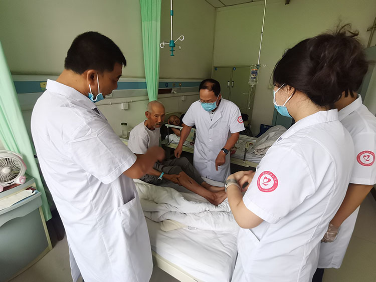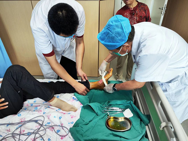 8月28日,《中國燒傷創(chuàng)瘍雜志》常務編委、燒傷創(chuàng)瘍再生醫(yī)療技術臨床專家趙瑞慶,在該醫(yī)院會診了9例慢瘡患者(糖足潰瘍2例,壓瘡4例,會陰部深筋膜感染1例,臀部深筋膜感染1例,下肢外固定皮膚感染1例),并針對每例患者制定出個性化的治療方法,受到當地醫(yī)務人員及家屬的熱情稱贊。