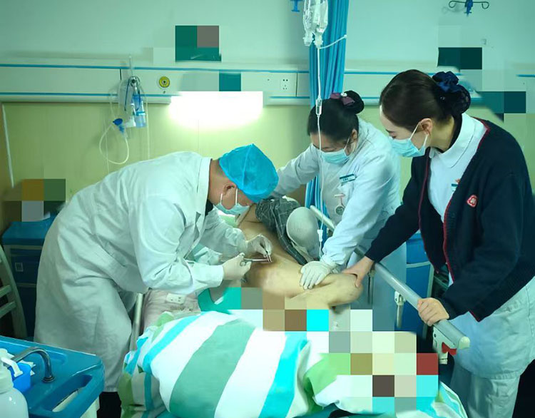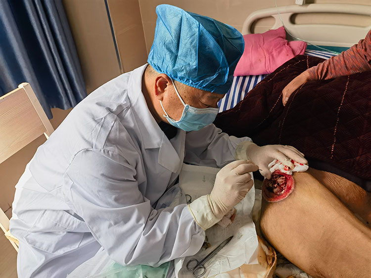 2025年3月6日,《中國(guó)燒傷創(chuàng)瘍雜志》編委、燒傷創(chuàng)瘍?cè)偕t(yī)療技術(shù)臨床專家張強(qiáng),應(yīng)邀來(lái)到淮南新華醫(yī)療集團(tuán)北方醫(yī)院,對(duì)一例長(zhǎng)期臥床導(dǎo)致多發(fā)性壓瘡患者進(jìn)行了會(huì)診,張主任對(duì)創(chuàng)面壞死組織清除后進(jìn)行再生醫(yī)療技術(shù)規(guī)范換藥以及壓瘡深層腔隙和潛行創(chuàng)面換藥注意事項(xiàng)進(jìn)行講解并示范換藥,受到醫(yī)患雙方的一致好評(píng)!