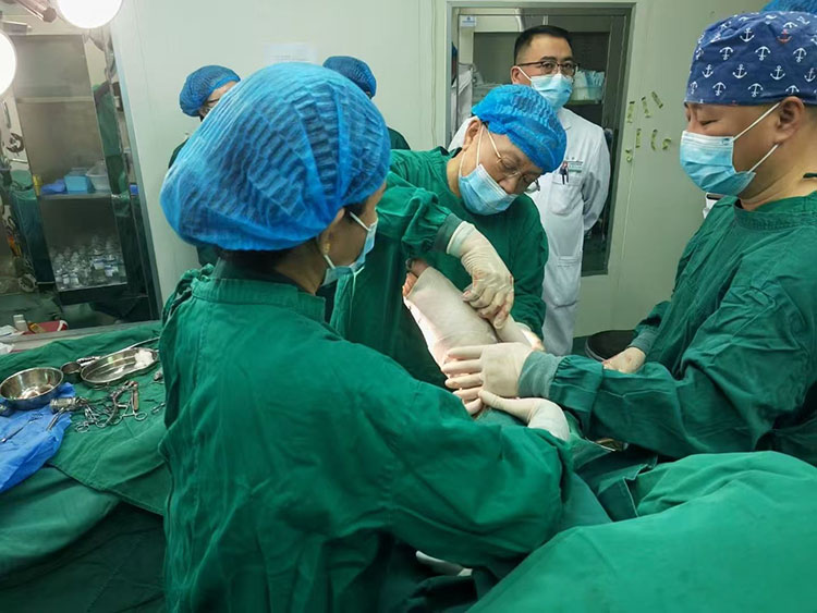 2025年3月9日,《中國(guó)燒傷創(chuàng)瘍雜志》常務(wù)編委、燒傷創(chuàng)瘍?cè)偕t(yī)療技術(shù)臨床專家趙瑞慶,在該醫(yī)院會(huì)診一例車禍致傷左踝關(guān)節(jié),足底弓軟組織缺陷的病人,經(jīng)采用再生醫(yī)療技術(shù)治療保足成功,該次手術(shù)主要解決跟骨結(jié)節(jié)與第一跖骨之間足虧的角度臨床問(wèn)題,為下一步治療做好鋪墊工作,并對(duì)術(shù)后注意事項(xiàng)做了具體要求,得到醫(yī)護(hù)和家屬的一致好評(píng)。