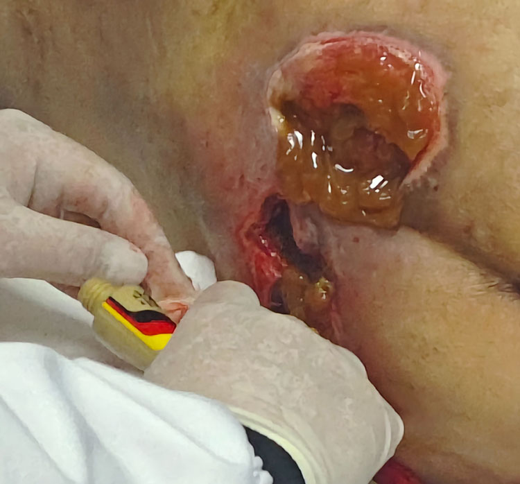 2025年3月10日,《中國(guó)燒傷創(chuàng)瘍雜志》編委、燒傷創(chuàng)瘍?cè)偕t(yī)療技術(shù)臨床專家張強(qiáng),到訪湖北宜昌國(guó)藥葛洲壩中心醫(yī)院老年醫(yī)學(xué)科一病區(qū),同陳寒漪護(hù)士長(zhǎng),趙夢(mèng)蝶護(hù)士等會(huì)診一例全身多發(fā)性壓力性損傷創(chuàng)面老年患者。張主任示范創(chuàng)面清理方式并行再生技術(shù)規(guī)范換藥。會(huì)診結(jié)束大家共同討論了營(yíng)養(yǎng)供給及后期換藥方案。