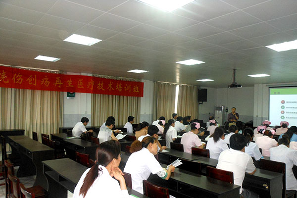 2015年6月16日,應(yīng)鐘祥市柴湖鎮(zhèn)中心衛(wèi)生院張院長的邀請,中國中西醫(yī)結(jié)合學(xué)會燒傷專業(yè)委員會常委、《中國燒傷創(chuàng)瘍雜志》常務(wù)編委金黨軍教授,對全院醫(yī)護(hù)人員進(jìn)行了“燒傷創(chuàng)瘍再生醫(yī)療技術(shù)臨床應(yīng)用”的培訓(xùn)。