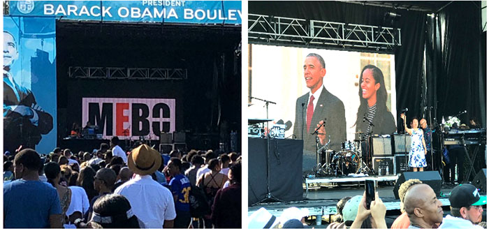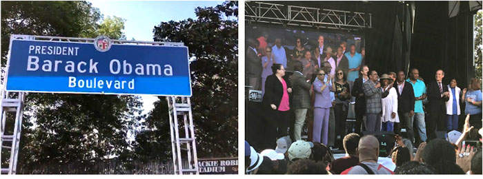 洛杉磯市于5月4日正式將羅德奧路(Rodeo Road)改名為奧巴馬大道(Obama Boulevard),以紀(jì)念美國第一位非洲裔總統(tǒng)。數(shù)千名興奮的群眾從中午開始陸續(xù)匯集在改名后的奧巴馬大道和與其交匯的馬丁路德金大道上,以音樂會和游園會的形式歡慶奧巴馬大道在洛杉磯市正式出現(xiàn)。