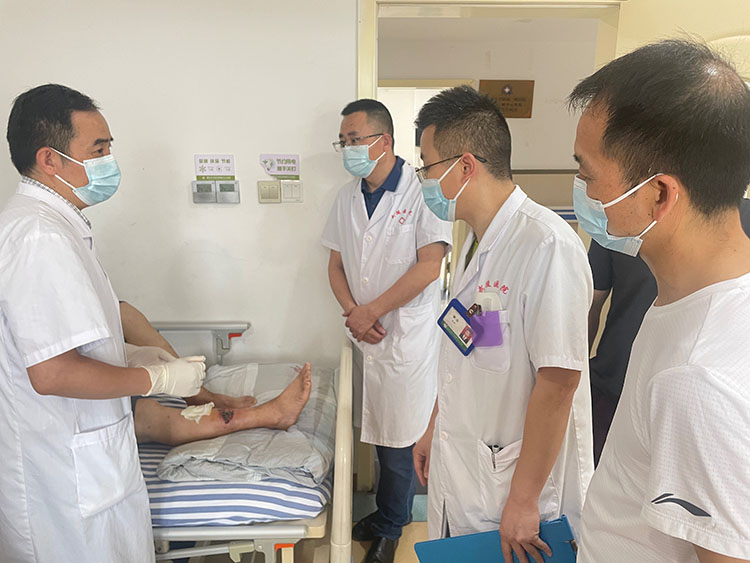 2023年5月30日,重慶三峽醫(yī)藥高等專(zhuān)科學(xué)校附屬人民醫(yī)院賴(lài)登祥教授創(chuàng)面修復(fù)團(tuán)隊(duì)在重慶市萬(wàn)州區(qū)武陵鎮(zhèn)中心衛(wèi)生院,進(jìn)行再生醫(yī)療技術(shù)巡講活動(dòng),隨后對(duì)一位慢創(chuàng)患者進(jìn)會(huì)診治療。