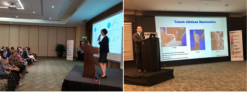 培訓(xùn)的議題主要分為兩大部分:一、再生醫(yī)療技術(shù)的全球發(fā)展,二、再生醫(yī)療技術(shù)在拉美地區(qū)的現(xiàn)階段發(fā)展。培訓(xùn)伊始,首先由國(guó)際再生醫(yī)學(xué)與創(chuàng)面修復(fù)學(xué)會(huì)北京辦公室主任徐巍巍進(jìn)行演講。她首先系統(tǒng)地介紹了再生醫(yī)療技術(shù)的發(fā)展歷史及諸項(xiàng)專利,為參會(huì)者展現(xiàn)出再生醫(yī)療技術(shù)的強(qiáng)大科研背景與科學(xué)實(shí)力。接著,她又著重分析了再生醫(yī)療技術(shù)在提供生理性濕潤(rùn)環(huán)境、緩解疼痛、控制炎癥、預(yù)防感染、改善瘢痕、液化壞死組織及促進(jìn)皮膚原位再生等方面的作用機(jī)制,清晰的梳理了再生醫(yī)療技術(shù)在創(chuàng)面治療領(lǐng)域的巨大優(yōu)勢(shì)。最后,她分享了近年來在全球開展的多項(xiàng)最新臨床研究結(jié)果,以及多個(gè)復(fù)雜病例的分享,直觀地呈現(xiàn)出再生醫(yī)療技術(shù)的顯著治療效果。