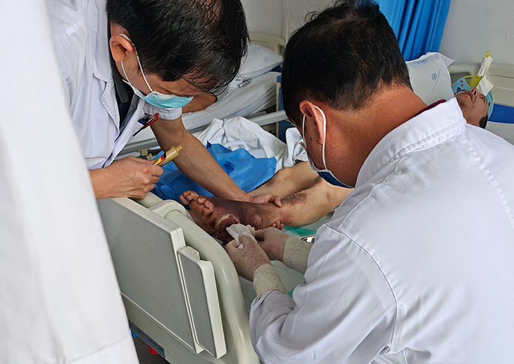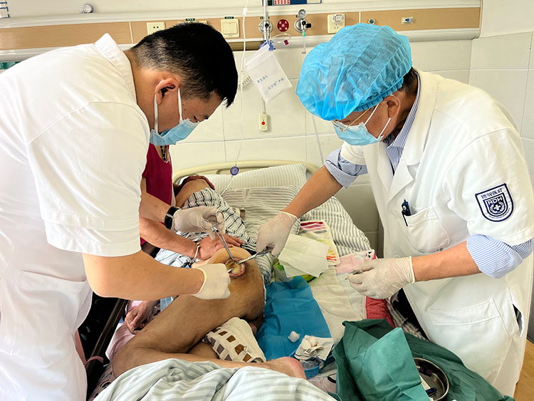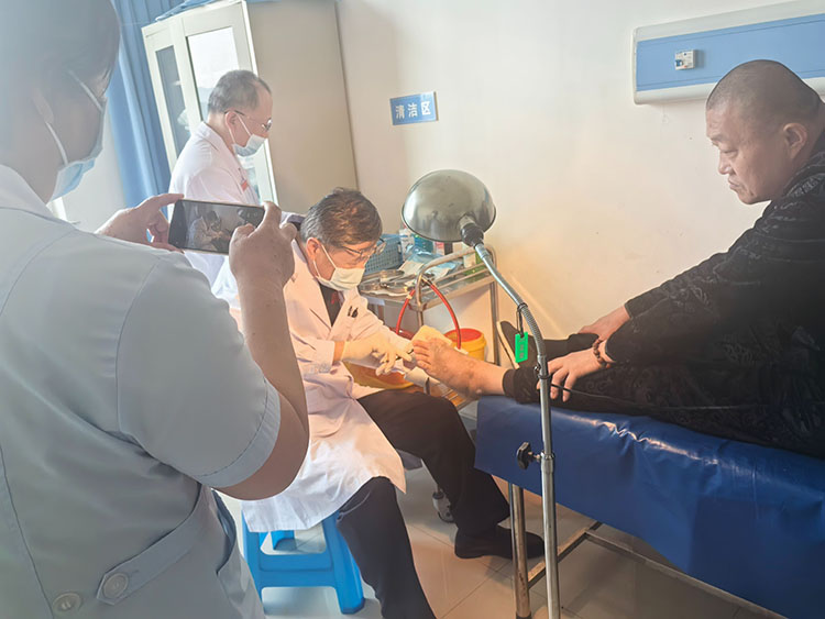 2025年5月26日,《中國燒傷創(chuàng)瘍雜志》編委、燒傷創(chuàng)瘍再生醫(yī)療技術(shù)臨床專家張強主任,受邀到中西醫(yī)結(jié)合醫(yī)院外科,會診一例糖尿病足和一例外傷后慢性骨髓炎慢性創(chuàng)面患者。張主任根據(jù)患者情況跟主任講解了后期清創(chuàng)范圍及注意事項。