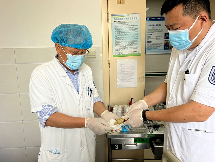 5月27日,《中國燒傷創(chuàng)瘍雜志》常務(wù)編委、燒傷創(chuàng)瘍再生醫(yī)療技術(shù)臨床專家趙瑞慶,應(yīng)南京南鋼醫(yī)院(南京德馭康養(yǎng)中心)邀請,在外科病區(qū)會診了五例慢創(chuàng)患者(糖足2例、壓瘡2例、下肢脈管炎1例)。在討論環(huán)節(jié)分別釆取一病一策的治療方法,最后將最新治療糖尿病足改善血液循環(huán)的方法傳授于當?shù)蒯t(yī)務(wù)人員,大家表示受益匪淺。