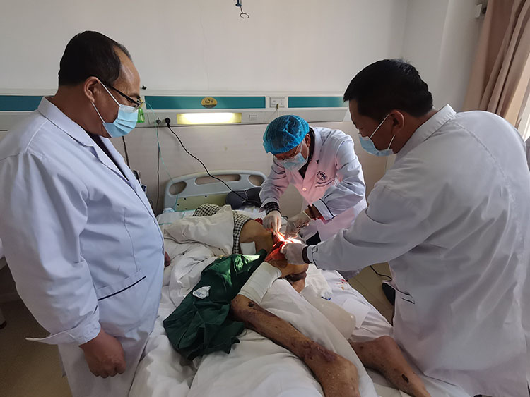 2025年2月20日,應(yīng)張家口市宣化區(qū)人民醫(yī)院急會(huì)診邀請(qǐng),《中國(guó)燒傷創(chuàng)瘍雜志》常務(wù)編委、燒傷創(chuàng)瘍?cè)偕t(yī)療技術(shù)臨床專(zhuān)家趙瑞慶,在該院會(huì)診了三例患者(1例下肢燒傷、1例糖尿病潰瘍、1例左手拇指干性壞死)。事后在醫(yī)辦室與科主任、主管醫(yī)生討論制定了下一步的治療方案,受到當(dāng)?shù)蒯t(yī)務(wù)人員及家屬的熱情稱(chēng)贊。