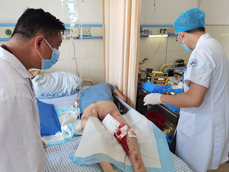 2023年8月8日,享受國(guó)務(wù)院特殊津貼專家、中國(guó)中西醫(yī)結(jié)合燒傷專業(yè)委員會(huì)顧問、中國(guó)研究型醫(yī)院學(xué)會(huì)創(chuàng)面防治與損傷組織修復(fù)專業(yè)委員會(huì)委員、《中國(guó)燒傷創(chuàng)瘍雜志》常務(wù)編委、成都市郫都區(qū)人民醫(yī)院燒傷創(chuàng)瘍科學(xué)術(shù)帶頭人付子俊教授,應(yīng)邀來到昭通市彝良縣人民醫(yī)院,對(duì)該院相關(guān)科室的醫(yī)護(hù)人員進(jìn)行再生醫(yī)療技術(shù)多學(xué)科規(guī)范化應(yīng)用培訓(xùn)。會(huì)后,付子俊教授對(duì)多名創(chuàng)瘍患者進(jìn)行了會(huì)診,為醫(yī)護(hù)人員展示了規(guī)范化換藥操作示范。