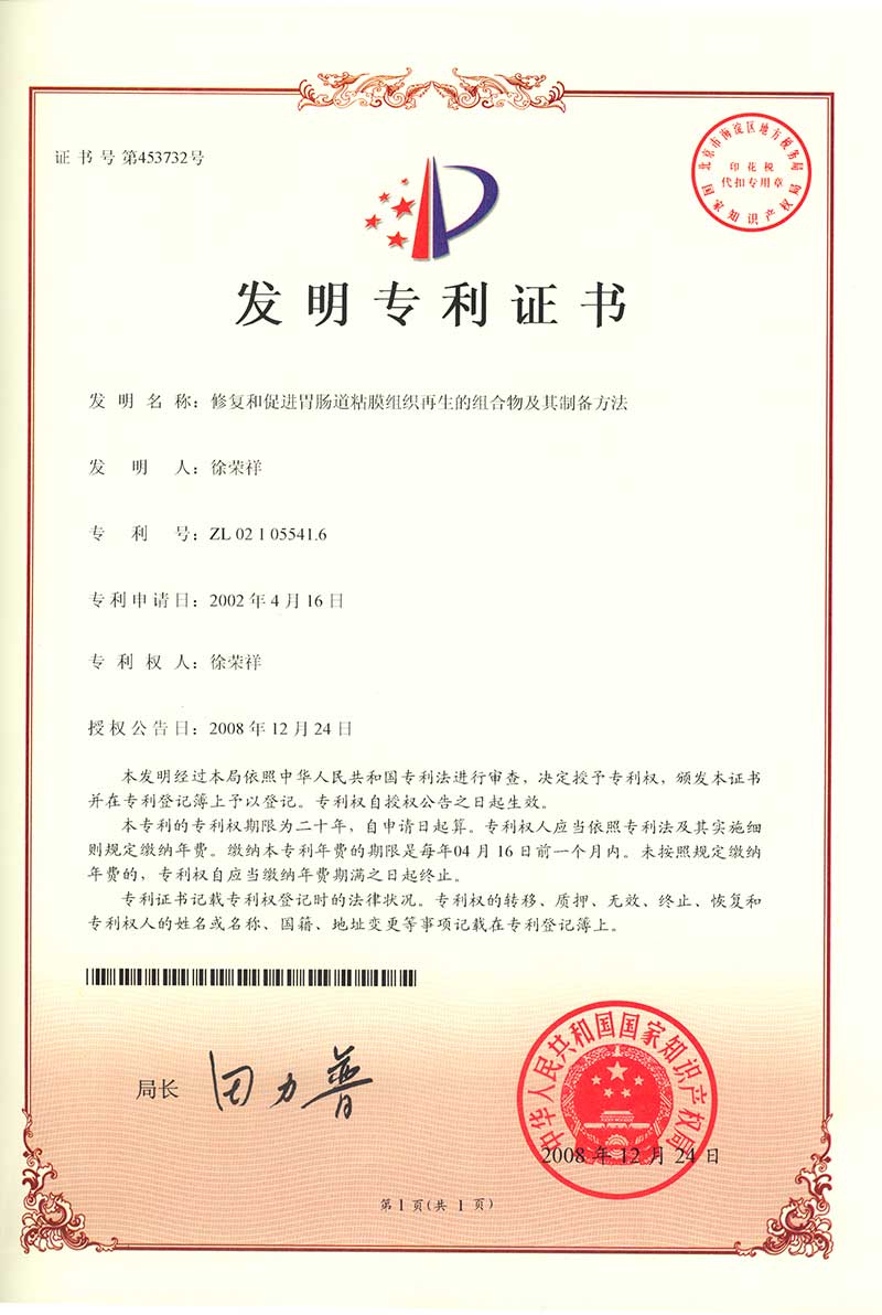 | 02105541.6 | 修復和促進胃腸道粘膜組織再生的組合物及其制備方法 | 查看 |