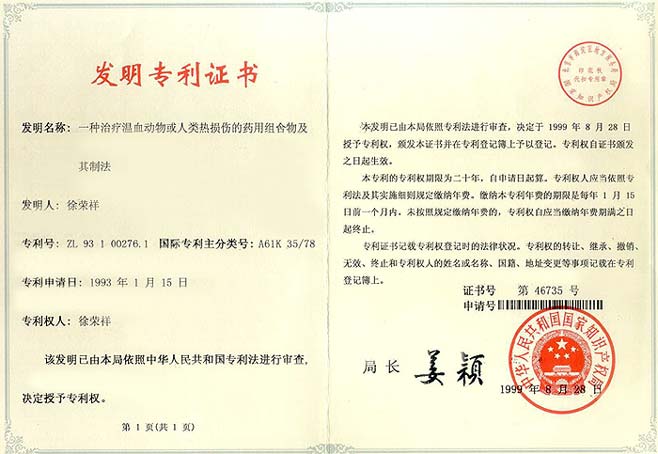 | ZL93100276.1 | 一種治療溫血動物或人類熱損傷的藥用組合物及其制法 | 查看 |