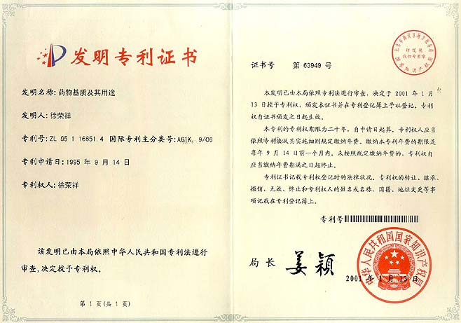 | ZL95116651.4 | 藥物基質(zhì)及其用途 | 查看 |