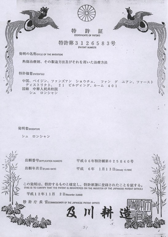 | 0606786(93402890.3) | 一種治療溫血動物或人類熱損傷的藥用組合物及其制法 | 查看 |