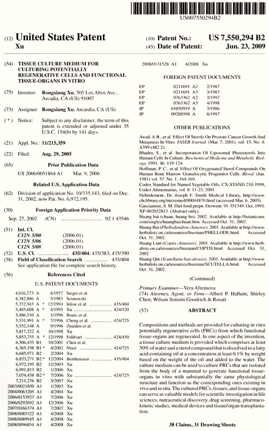 | 7550294 B2 | 潛能再生細胞與功能組織器官體外組織培養(yǎng)基 | 查看 |