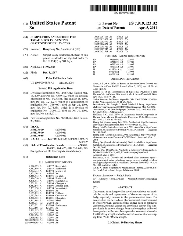 | 7919123 B2 | 治療與預防胃腸道癌癥方法 | 查看 |