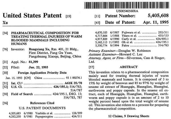 | 5405608 | 一種治療溫血動物或人類熱損傷的藥用組合物及其制法 | 查看 |
