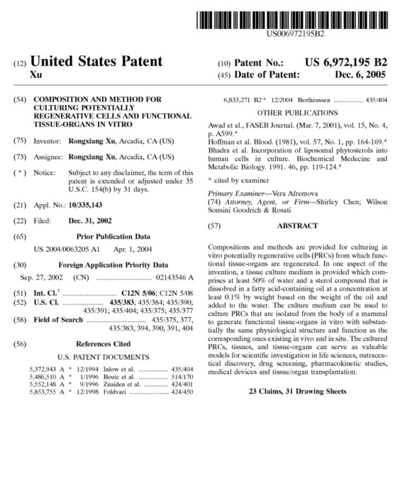 | 6972195 B2 | 在體外培養(yǎng)潛能再生細胞和有功能的組織器官的成分和方法 | 查看 |