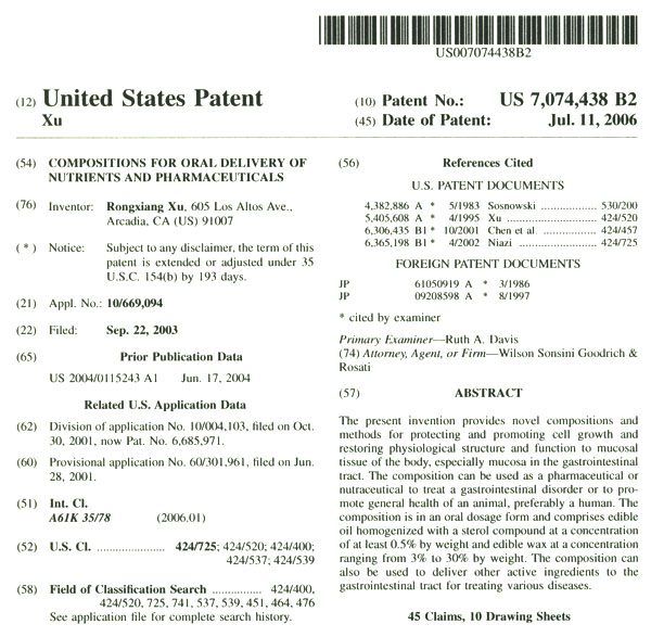 | 7074438 B2 | 口服營養(yǎng)素以及藥物的組分 | 查看 |